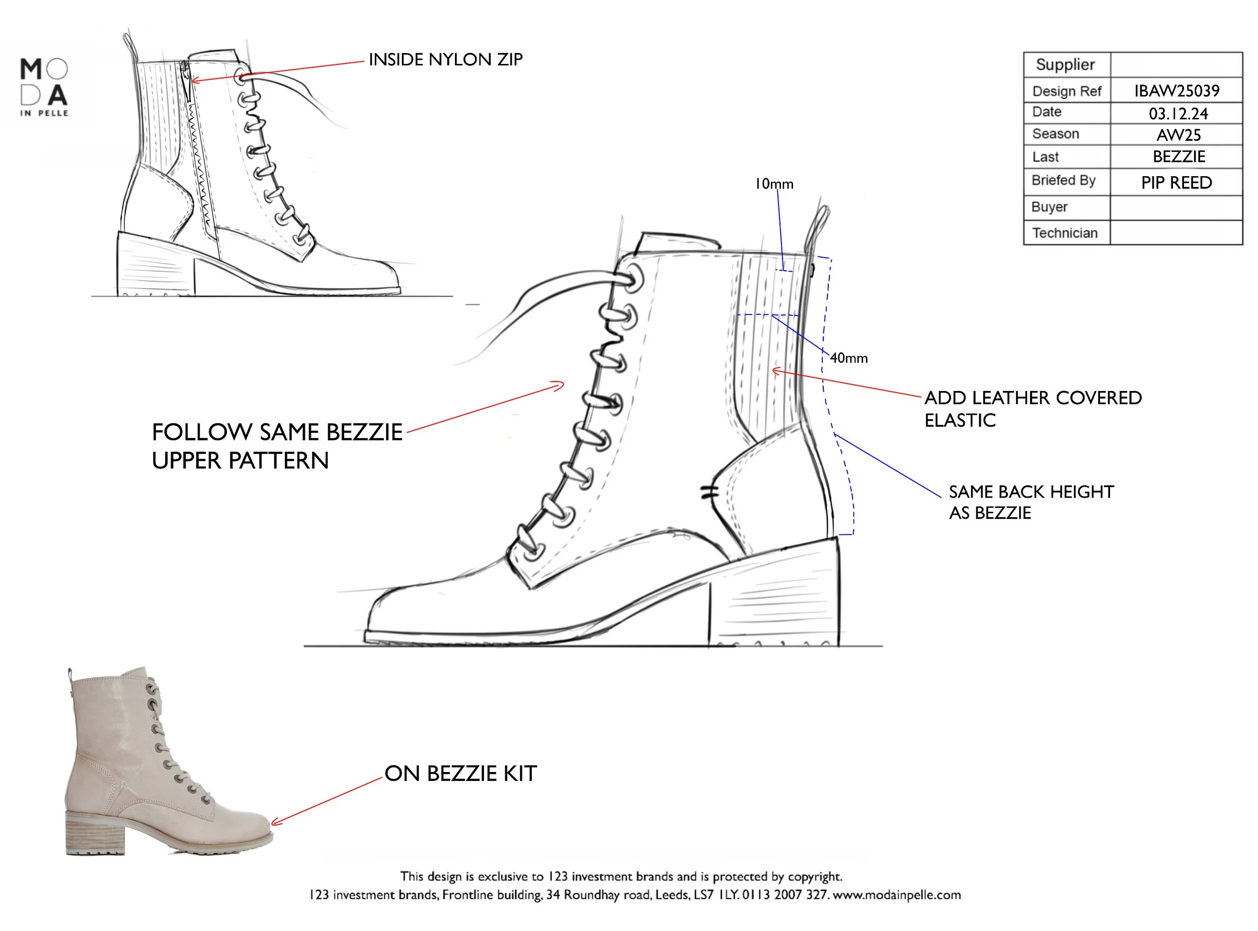 To design Moda In Pelle’s most successful shoe in its history was a very special thing for me. What this gave me was a platform to build upon this style and see where we could take it. I knew what she loved and what couldn’t change, the last, the toe shape, the leather and the proportions of the pattern. While still keeping these aspects of the shoe I was able to grow the Bezzie family and give the customer something fresh every season but keep it in a way that she would recognise the make up to be of the original Bezzie.